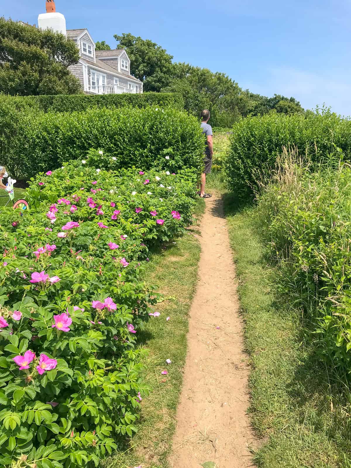 One of the best ways to see ‘Sconset’s beautiful roses is by going on the Bluff Walk, a pedestrian path that begins not far from the village’s main intersection and continues north for about three quarters of a mile. The public path cuts through the ocean-view backyards of the 1 percent, which means your walk boasts not only sweeping views of the Atlantic Ocean but also a peek into the lives of some of the fortunate families who summer here. The path ends near the historic Sankaty Head Light.